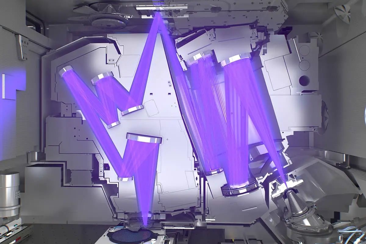 Trong buồng chiếu, laser CO₂ công suất lớn nung nóng thiếc đến nhiệt độ vượt cả bề mặt Mặt Trời, tạo ra ánh sáng EUV cần thiết để khắc cấu trúc transistor siêu nhỏ. Ánh sáng này sau đó được hệ thống quang học siêu chính xác của Carl Zeiss AG thu gom và định hướng trước khi chiếu lên wafer phủ photoresist.